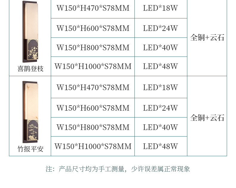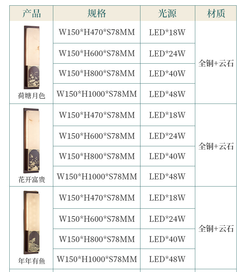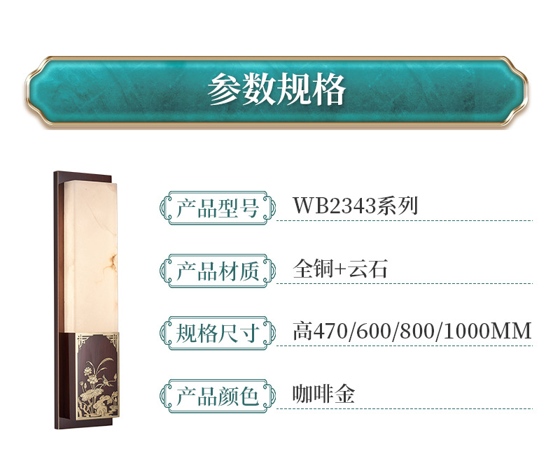 灯具材质:优质铜材+西班牙进口天然云石A料