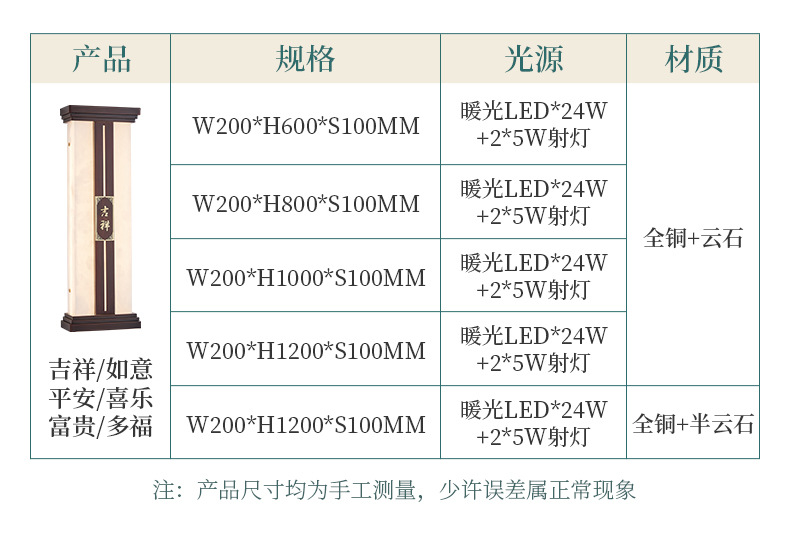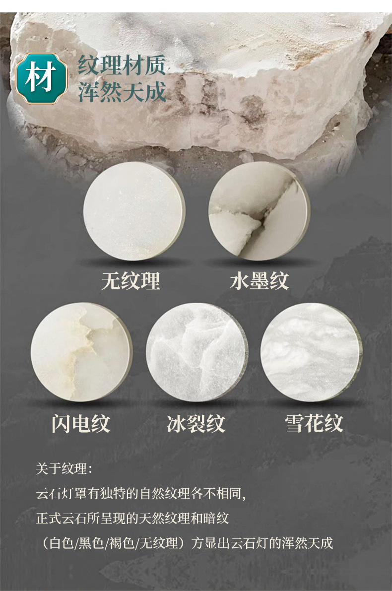 灯具材质:优质铜材+西班牙进口天然云石A料