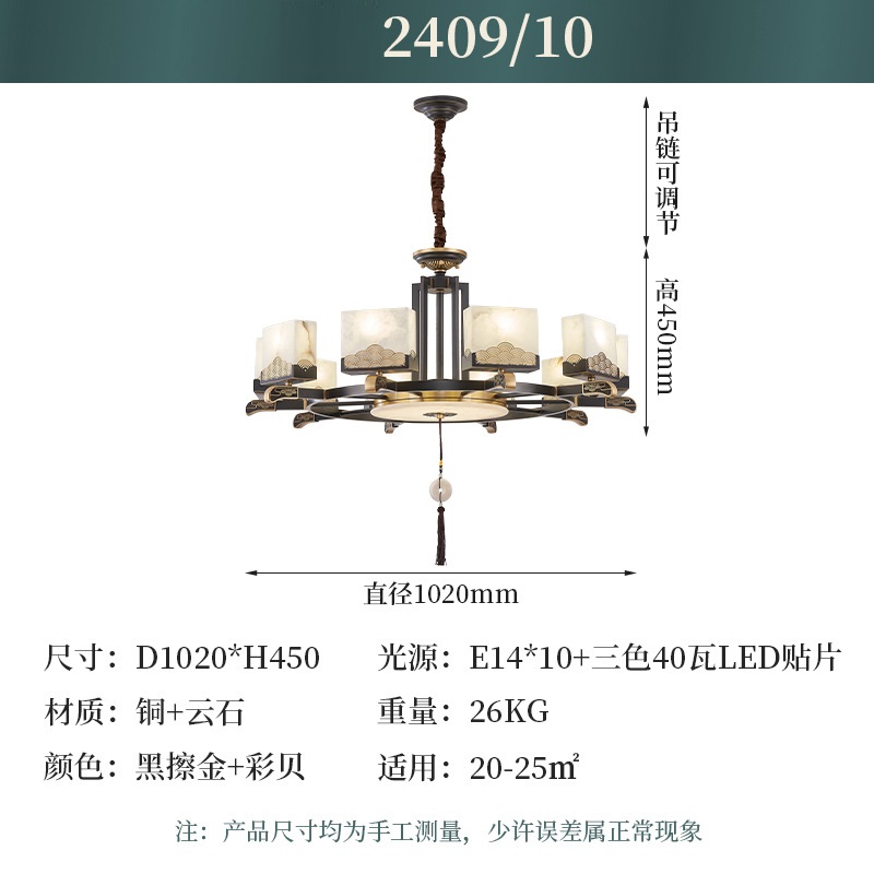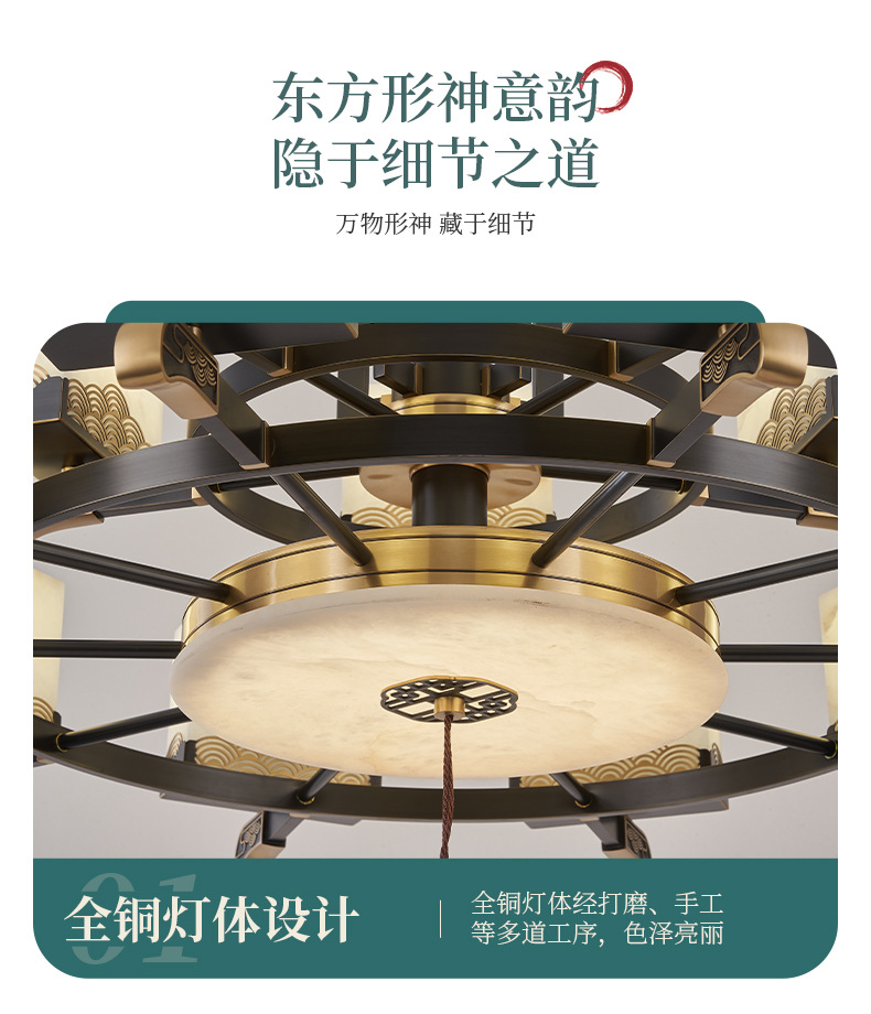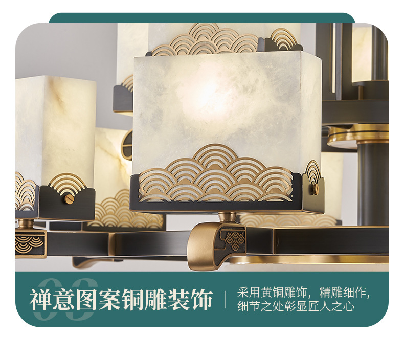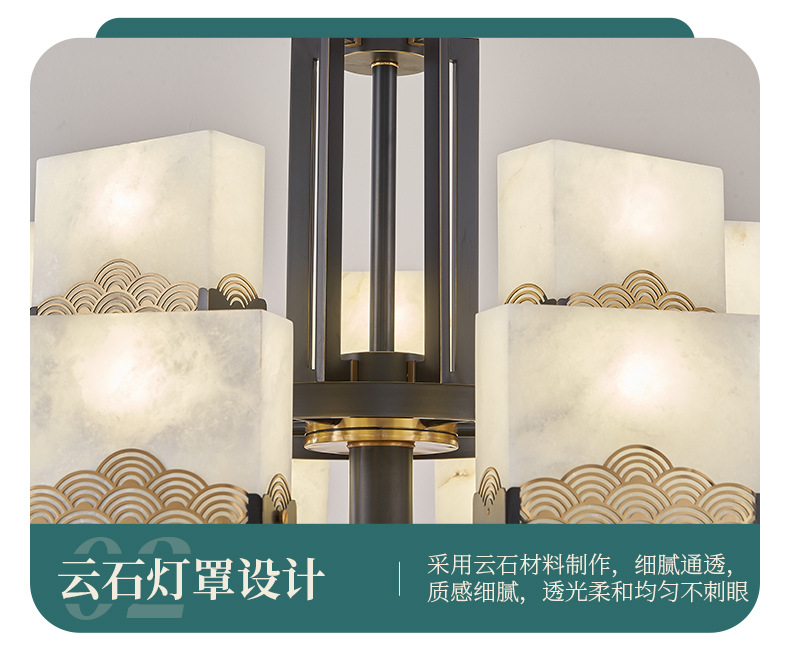 灯具材质:优质铜材+西班牙进口天然云石A料