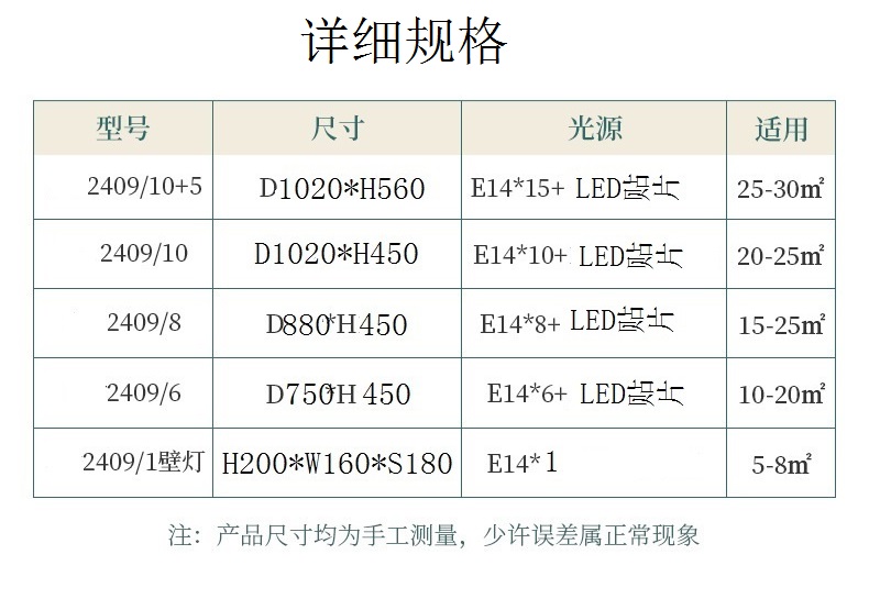 规格尺寸:10头直径1020高450毫米 不含吊链