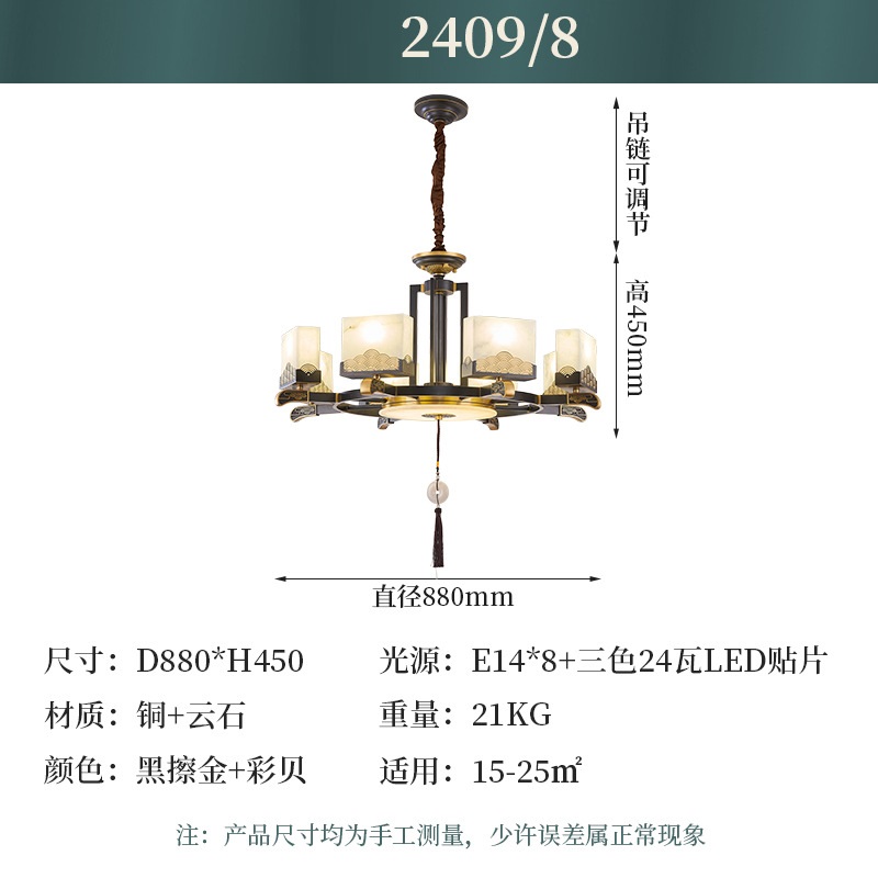 灯具材质:优质铜材+西班牙进口天然云石A料