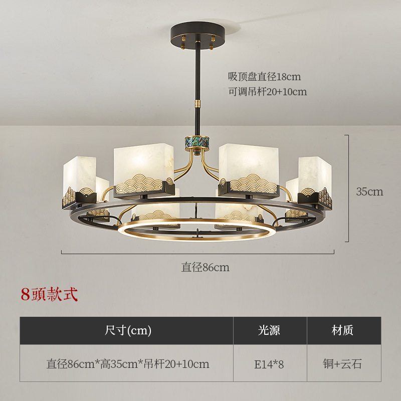 灯具材质:优质铜材+西班牙进口天然云石A料