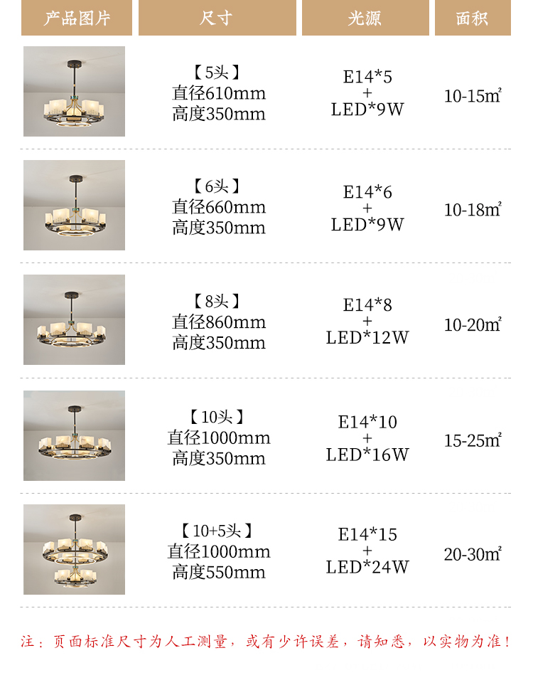 灯具材质:优质铜材+西班牙进口天然云石A料