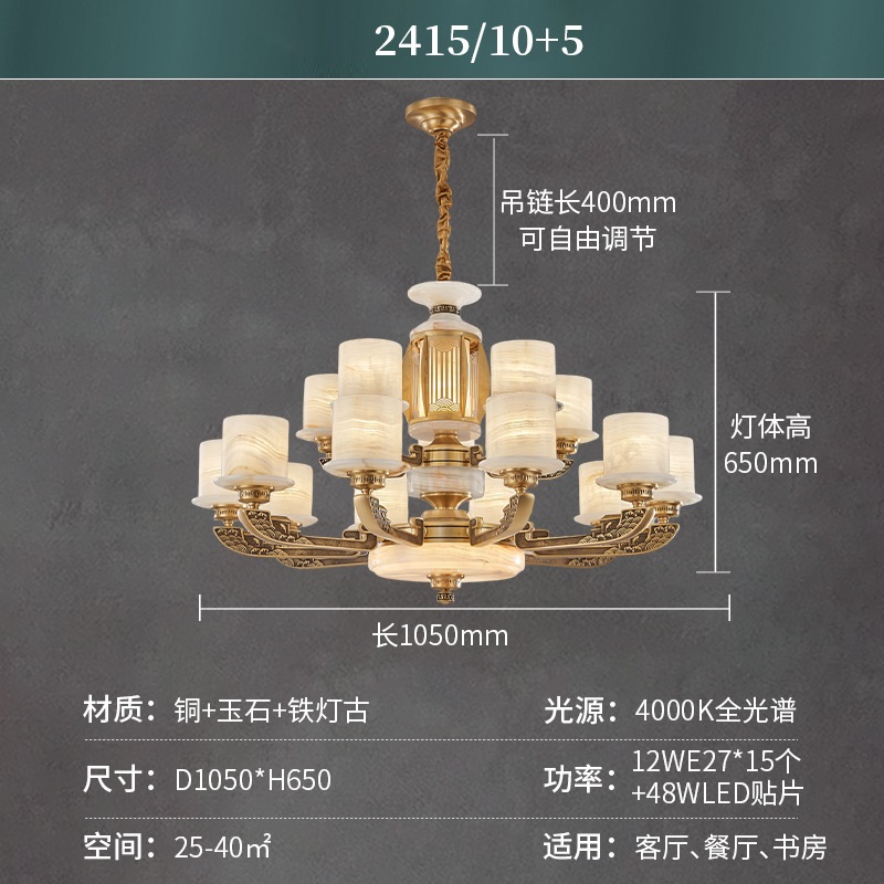 新中式全铜天然玉石吊灯BP2415-10+5