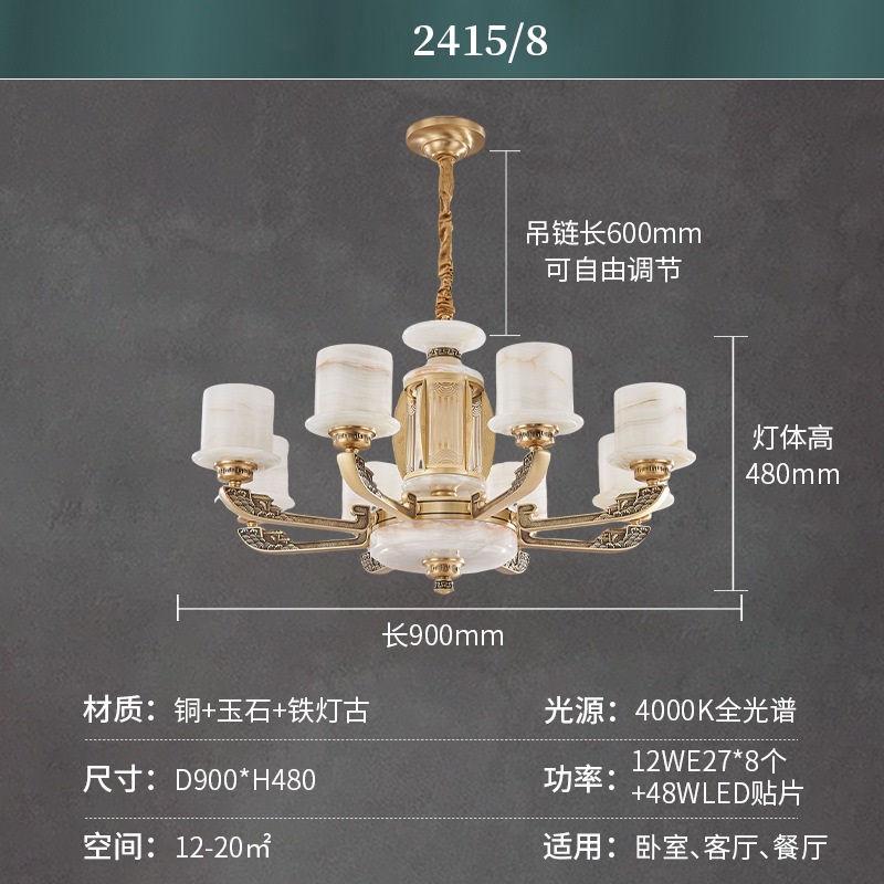 新中式全铜天然玉石吊灯BP2415-8