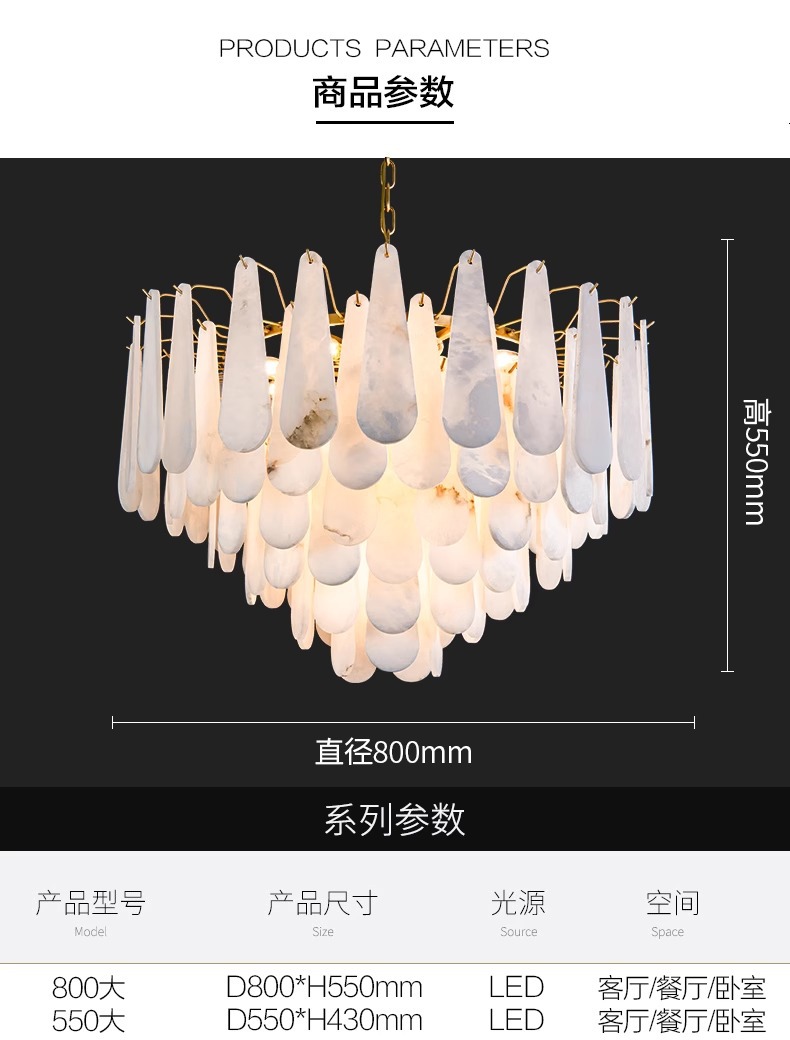 灯具材质:优质铜材+西班牙进口天然云石A料