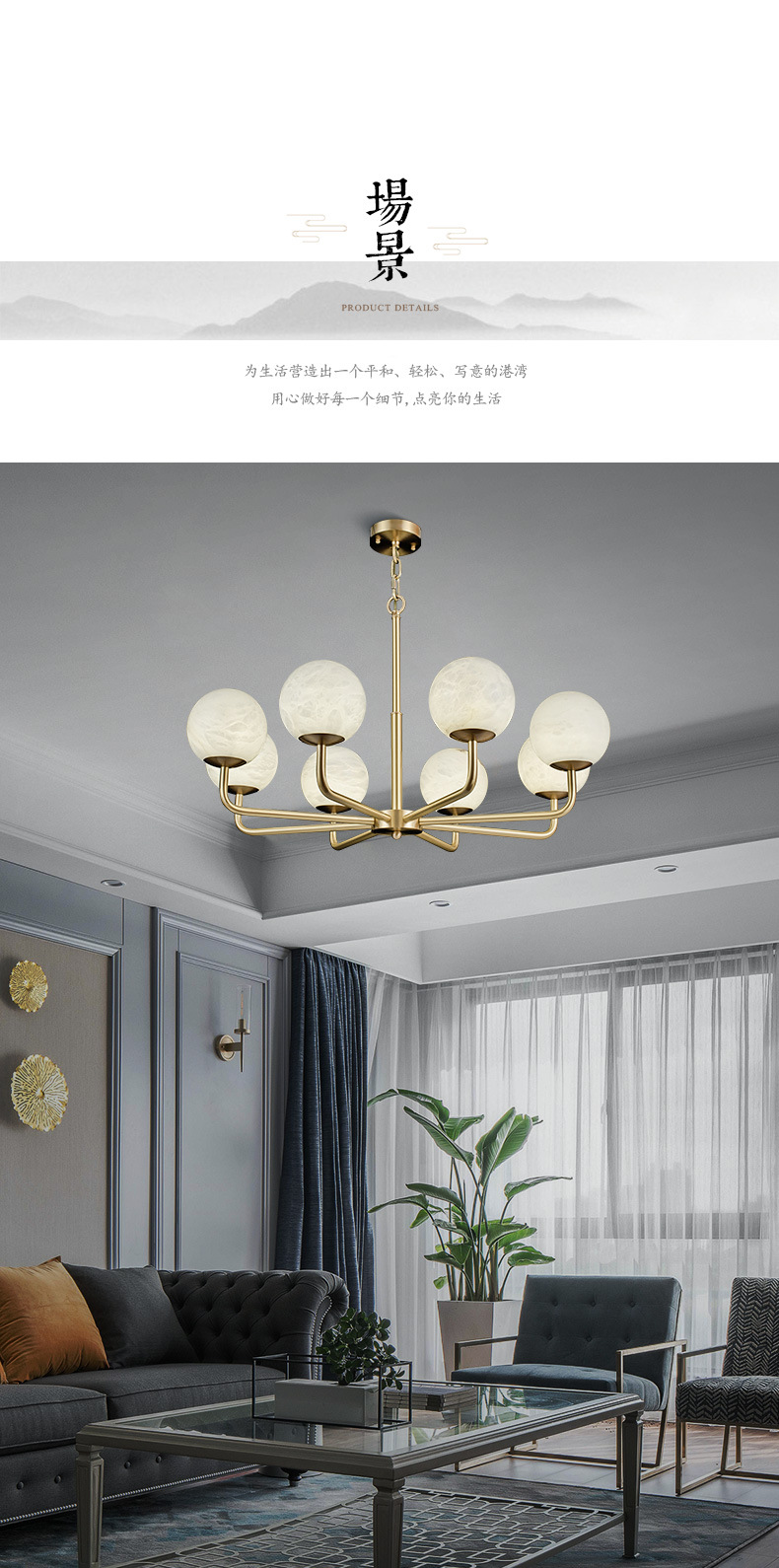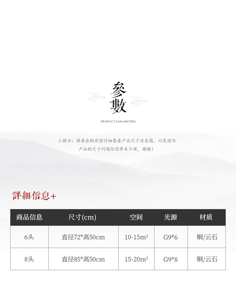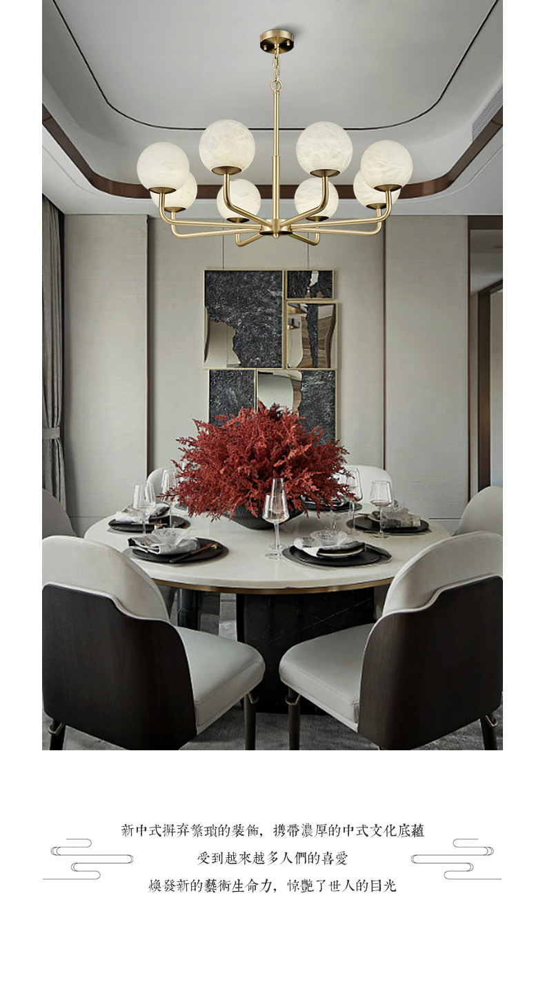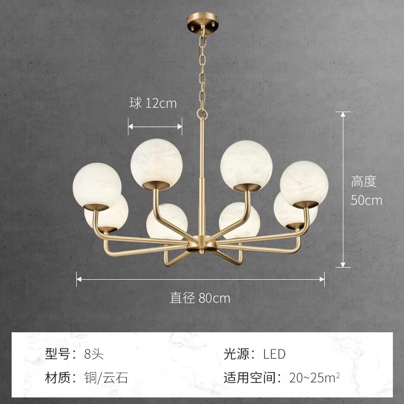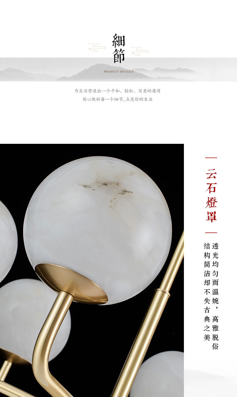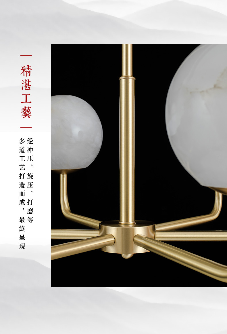灯具材质:优质铜材+西班牙进口天然云石A料